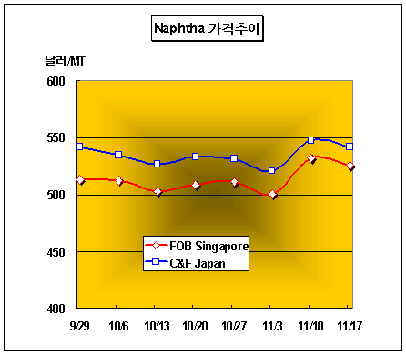 표, 그래프: | Naphtha 가격추이 | <화학저널 2006/11/25> |