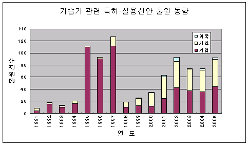 표, 그래프: | 가습기 관련 특허 실용신안 출원 동향 | <화학저널 2006/12/27> |