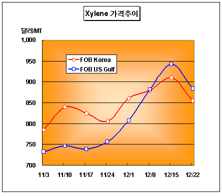표, 그래프: | Xylene가격추이 | <화학저널 2006/12/27> |
