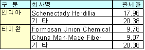 표, 그래프: | 예비 반덤핑관세 부과현황(2006) | <화학저널 2006/12/27> |