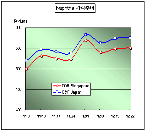 표, 그래프: | Naphtha가격추이 | <화학저널 2006/12/28> |