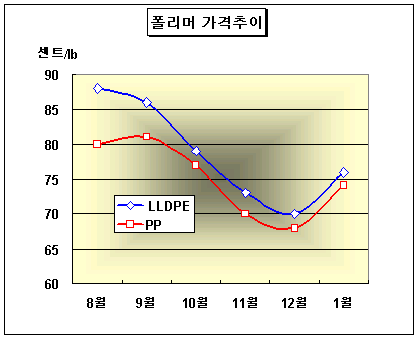 PP(Polypropylene) 가격은 11월 파운드당 70-78센트로 7센트 하락했으며 생산기업들은 2007년 1월 계약가격은 파운드당 5센트 오른 것으로 파악되고 있다.