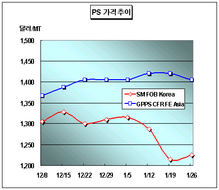 표, 그래프: | PS 가격추이 | <화학저널 2007/01/31> |