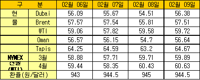 [국제유가] 국제유가, 56달러로 급등 전환 | 2021-02-02 | ||