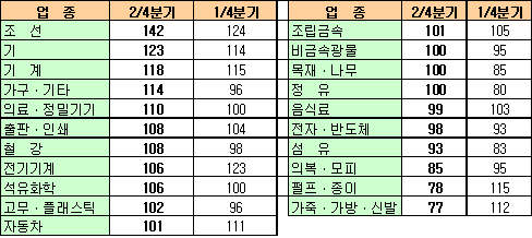 상의, 2/4분기 EPI 105로 호조 … 석유화학 106에 플래스틱은 102로 2/4분기에는 국내 제조기업의 고용이 다소 증가할 것으로 전망된다.대한상회가 최근 전국 1564개 제조기업을 대상으로 2007년 2/4분기 고용전망지수(EPI)를 조사한 결과, 1/4분기 103보다 소폭 상승한 105로 조사됐다. 고용계약 1년 이상의 상용근로자(104)는 1/4분기에 비해 늘어날 것으로 예상된 반면, 고용계약 1년 미만의 임시근로자(96)와 1개월 미만의 일용근로자(94)는 감소할 것으로 조사됐다. 또 왕성한 생산활동을 유지하고 있는 조선(142), 컴퓨터ㆍ사무기기(123), 기계(118) 업종의 고용이 증가하는 반면, 장기불황을 겪고 있는 가죽ㆍ가방ㆍ신발(77), 중국 저가용지 등과 가격경쟁이 심하고 신소재 전환이 늦은 펄프ㆍ종이(78) 등은 감소할 것으로 전망됐다. 화학업종에서는 석유화학이 100에서 106으로, 고무ㆍ플래스틱은 96에서 102로, 정유는 80에서 100으로 크게 증가할 것으로 예상됐다.