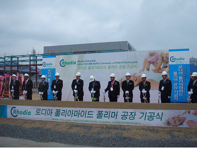 한편, Rhodia Polyamide는 2007년 3월15일 온산에서 PA 66 중합공정과 Nylon Salt를 생산하는 폴리온산공장 착공식을 가졌다.