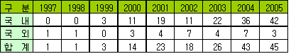 인텔 외에도 삼성전자ㆍ하이닉스ㆍIBMㆍAMD 등 국내외 유수기업들이 앞 다투어 준비하고 있는 차세대 반도체 공정의 대부분이 high-k 게이트 절연막 및 금속 게이트 기술을 기반으로 하고 있어 앞으로 기술을 선점하기 위한 특허출원 경쟁이 점차 가열될 것으로 전망된다. 한편, high-k는 유전율(상수 k로 표현)이 높은 유전체를 뜻하며, 반도체 배선간 간섭을 차단하고 트랜지스터의 기본 구성단위인 게이트를 절연하는 특성이 높은 유전체를 말한다. 표, 그래프: | high-k 게이트 절연막 및 금속 게이트 포함 반도체 트랜지스터 관련 특허 출원건수 | <화학저널 2007/04/11> |