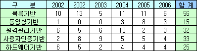 원격관리 및 동영상 기반 차단기술 개발 … 중소기업ㆍ개인 관심 목록기반의 단순 유해사이트 차단에서 동영상이나 이미지를 비교해 유해정보를 차단하는 특허 출원이 증가하고 있다.특허청에 따르면, 최근 6년간(2001-06년) 유해정보 차단과 관련된 특허 및 실용신안의 출원은 총 161건으로, 특히 동영상 기반의 유해정보차단 기술관련 출원은 총 15건으로 전체의 9%를 차지하는데 불과하나 2004년 이후 14건이 집중적으로 출원됐다. 유해정보 차단기술은 유해사이트 목록과 비교해 차단하는 목록기반, 동영상이나 이미지의 피부색 및 메타데이터를 비교해 유해정보를 차단하는 동영상기반, 휴대폰 등을 이용해 원격에서 컴퓨터를 감시 및 제어하는 원격관리기반, 사용자에 따라 유해정보를 차단하는 사용자인증기반, 모니터나 전원을 직접 차단하는 하드웨어기반 기술로 구분되고 있다.