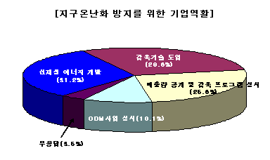 특히, 온실가스 최다 배출원과 관련해서는 58.6%가 수송부문을, 30.0%가 산업부문, 7.6%가 발전부문을 각각 주요 배출원으로 인식하고 있어 현실과는 차이가 있는 것으로 나타났다. 실제 2005년 에너지부문 배출량 비율은 발전 34.0%, 산업 31.4%, 수송 21.0%, 가정 9.8%로 집계되고 있다. 기후변화 방지대책 관련 인식수준에서는 기업의 역할에 대해 31.2%가 신ㆍ재생에너지 개발, 29.6%가 배출량 감축 신기술 도입을 요구했다. 특히, 경제적 부담이 크더라도 우리나라가 의무감축국으로 지정돼야 한다는 의견에 대해 83.7%가 긍정적으로 인식했다. 표, 그래프: | 지구온난화 방지를 위한 기업역활 | <화학저널 2007/05/8> |