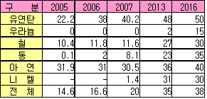 산자부, 수입단가 상승 97억달러로 59% 급증 … 자주개발율 20% 수준 국제 광물가격 급등으로 2006년 우리나라의 광물 수입액이 97억달러를 넘어선 것으로 나타났다.산업자원부에 따르면, 2006년 광물 수입액은 97억2400만달러로 2005년 61억2100만달러보다 58.9% 증가했다. 수입액 급증은 수요증가보다는 가격 상승요인이 크게 작용했는데, 철광은 수입물량이 4389만5000톤으로 1% 증가에 그쳤으나 수입액은 19억2800만달러에서 23억7700만달러로 23.3% 늘었다. 특히, 아연광은 수입물량이 130만8000톤으로 1.9%밖에 늘지 않았으나 수입액은 15억5400만달러로 2005년 5억7000만달러의 3배에 가까웠다.