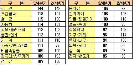 상의, 3/4분기 106으로 개선 … 플래스틱ㆍ고무도 112 전망 경기회복을 나타내는 지표가 잇따르고 있는 가운데 2007년 들어 3분기 연속 고용사정이 나아질 것으로 전망됐다.대한상의(회장 손경식)는 전국 1564개 제조기업을 대상으로 조사한 결과 3/4분기 고용전망지수(EPI)가 106으로 2/4분기 105에 비해 상승했다고 6월11일 발표했다. EPI는 2006년 4/4분기에 99까지 떨어졌으나 2007년 1/4분기에 103으로 회복한 이후 3/4분기까지 3분기 연속 상승세를 나타냈다. 실제 고용사정을 반영하는 EPI 실적도 2006년 3/4분기 96에서 4/4분기 99, 2007년 1/4분기 101, 2/4분기 104로 점차 상승하고 있다. 3/4분기 고용은 수주 호조 등으로 호황을 누리고 있는 조선(144)과 중국수요 증가 등에 따라 전망이 밝은 조립금속(118), 후판 수요 증가와 조강설비 투자 확대로 수혜가 예상되는 철강(115) 등이 호조를 나타낼 것으로 전망됐다.