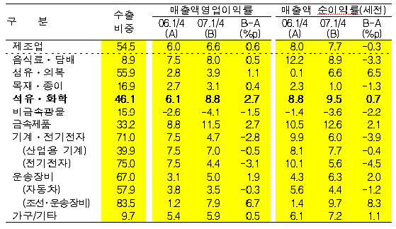 일부 호황업종에서 고수익을 내는 제조기업이 소폭 증가하는 가운데서도 대부분의 업종은 수익성이 떨어진 것으로 해석된다.