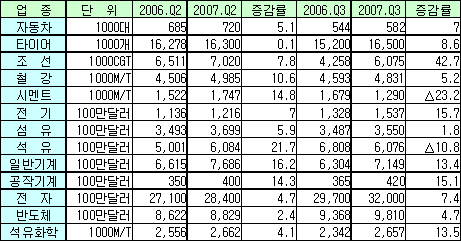 표, 그래프: | 수출실적 및 전망 | <화학저널 2007/06/28> |