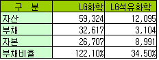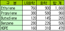합병 승인 주주총회는 9월14일 개최되며 합병기일은 11월1일이다. 표, 그래프: | LG의 석유화학제품 생산능력 | LG화학ㆍLG석유화학의 재무현황(2007.3) | <화학저널 2007/07/06> |