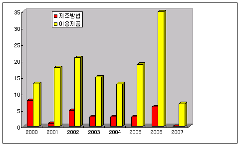 정부는 1992년부터 오존파괴물질 수입ㆍ수입업자의 부담금을 재원으로 한 <특정물질사용 합리화기금>을 조성하고 있는데 2007년에는 84억원의 기금예산을 활용해 대체물질의 생산 및 이용에 관한 <시설대체자금융자>, <대체물질기술개발 출연> 및 <대체물질기술개발 기술지도사업> 등을 지원했다. <김 은 기자> 표, 그래프: | 수소화불화탄소 및 과불화탄소 제조방법과 이용제품 출원 동향 | <화학저널 2007/07/13> |