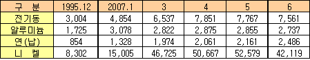표, 그래프: | 비철금속 수입가격 변화 | <화학저널 2007/07/16> |