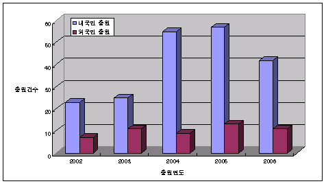 반도체 칩은 고집적화되면서 반도체칩 내부회로를 구성하는 금속배선의 선폭과 절연체의 두께가 수십 나노미터 정도로 감소하면서 정전기에 대한 내성이 떨어지고 있다. 특허청은 휴대 통신기기용으로 수요가 급증하고 있는 고주파회로용 반도체 칩은 정전기에 대한 내성이 작고, 반도체 칩의 고집적화 때문에 정전기 방지회로가 소형화되어야 하는 문제점들을 극복하는 방향으로 기술 개발이 활발할 것으로 전망하고 있다. 표, 그래프: | 정전기 방지회로 관련특허 출원동향 | <화학저널 2007/07/19> |