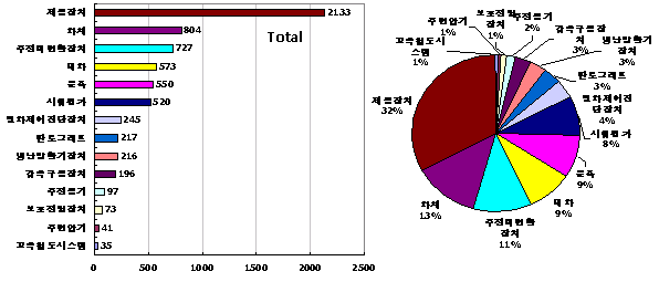 특허청, 국내출원 2005년 59건으로 급증 … 세계 특허는 6400여건 고속철도의 최고속도 경쟁이 치열해지고 있는 가운데 고속철도차량 특허가 증가하고 있다.특허청(청장 전상우)에 따르면, 국내출원 고속철도차량 특허는 1990년 이전 평균 5건에서 2000년 35건을 기록한 후 2005년 59건으로 급증하고 있다. 일본, 유럽 및 미국에서 출원된 특허는 1980년 이후 총 6400여건으로 약 45% 정도인 2900여건은 1990년대 중반 이후에 출원된 것으로 나타났다. 특히, 제동장치에 관한 기술이 32%, 차체형상 및 강성에 관한 특허가 13%, 그리고 차량 동특성을 결정하는 대차윤 및 윤축관련 특허가 각각 9%를 차지하고 있다.