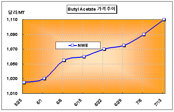 아시아 NBA(n-Butyl Acetate) 시장은 다운스트림인 Butyl Acetate 수요가 감소하면서 하락세를 나타내고 있다.