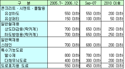 특히, 2010년부터 함유기준 적용지역을 현행 수도권 지역에서 전국으로 확대하기로 도료기업과 합의했다.
