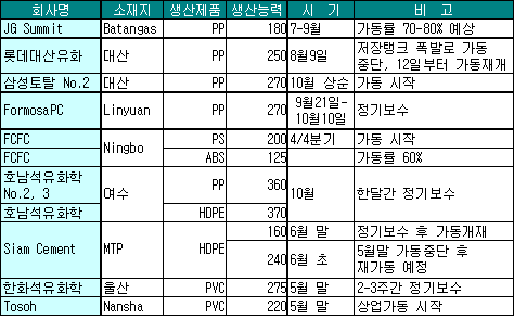 표, 그래프: | 아시아의 폴리머 플랜트 가동현황 | <화학저널 2007/08/22> |