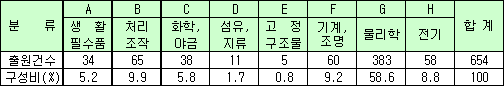 한편, 코리올리힘(Coriolis’ Force)는 1828년 프랑스의 Gustave Gaspard Coriolis(1792-1843)가 이론적으로 유도해 코리올리힘이라 부르며, 전향력(轉向力)이라고도 한다. 원심력(遠心力)과 마찬가지로 회전하는 물체 위에서 운동을 보면 나타나는 가상적(假想的)인 힘으로, 크기는 운동체의 속력에 비례하고 운동방향에 수직으로 작용한다. 북극(N)에서 지구 밖의 별(P) 방향과 일치하는 지구상의 O 방향으로 미사일을 발사했을 때 미사일이 비행 중에 발생한 지구의 자전 거리만큼 미사일은 오른 쪽으로 휘어 도달한다고 생각하는 것이다. 또 코리올리 힘을 상정하면 어떤 지점의 바로 위에서 지상으로 낙하하는 물체는 북반구에서는 서쪽으로 쏠리고, 남반구에서는 동쪽으로 쏠리게 되는데, 빗나감이 생기는 것도 실제 확인되고 있다. 따라서 코리올리 힘은 북반구에서는 진행방향의 오른쪽, 남반구에서는 반대쪽으로 작용하고, 크기는 적도에서 가장 크며, 극에서는 0이다. 대부분 소용돌이 현상으로 나타나는 코리올리 힘은 우리나라와 같은 지구 북반구에서는 시계 반대방향으로, 오스트레일리아와 같은 남반구에서는 시계방향으로 소용돌이가 발생한다. 코리올리 힘의 작용사례로는 태풍의 회오리, 욕조나 배수구에서 물이 빠질 때는 한쪽 방향으로 발생하는 소용돌이, 뜨거운 물에 커피를 탈 때 수면 위 커피의 소용돌이 등이 있다. 표, 그래프: | 코리올리 힘 특허의 국제특허분류(IPC)별 출원분포 | <화학저널 2007/08/30> |