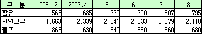 표, 그래프: | 유기ㆍ무기 원료의 수입가격 변화 | <화학저널 2007/09/13> |