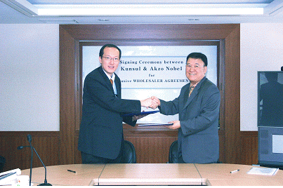 제비표페인트로 잘 알려진 건설화학이 세계적인 도료기업 Akzo Nobel과 자동차보수용 도료의 독점판매 및 기술제휴 협약을 맺고 Akzo Nobel 공급제품의 국내판매를 시작한다.