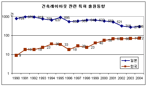 표, 그래프: | 건축레이아웃 관련 특허 출원동향 | <화학저널 2007/10/1> |