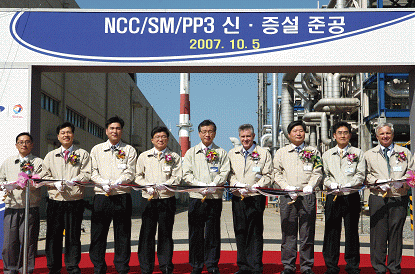 5500억원 투자 에틸렌 20만톤 증설 … SM 22만톤에 PP 32만톤도 삼성토탈이 대산 플랜트 신증설을 완료하고 10월5일 준공식을 개최했다.고홍식 삼성토탈 사장은 10월5일 대산공장에서 창립19주년 기념식 및 주력공장 신증설 준공식을 갖고 “도전과 혁신의 19년 역사를 창조와 번영의 백년기업으로 이어가기 위해 국내 화학기업으로는 최초로 이익 1조클럽에 가입해 글로벌 리딩컴퍼니로 도약할 것”이라고 발표했다. 삼성토탈은 외환위기 직전인 1997년 매출 1조원에서 2008년 4조원 수준의 글로벌기업으로 4배 이상 성장할 전망이다.
