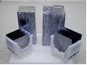 화학연구원, 잉곳 바취당 300kg 수준 상용화 … 생산성 40% 향상 친환경 대체에너지로 급속히 성장하고 있는 태양전지의 핵심소재인 다결정 실리콘 잉곳과 웨이퍼를 저렴한 비용으로 양산할 수 있는 기술이 국내 최초로 개발돼 주목되고 있다.한국화학연구원 문상진 박사팀은 글로실(대표 길종원)과 공동연구를 통해 상용화 수준의 태양전지용 다결정 실리콘 잉곳과 웨이퍼 제조기술 개발에 성공했다고 발표했다. 상용화 웨이퍼 및 블럭(글로실 제조) 개발한 기술은 매년 40% 이상 성장하고 있는 태양광산업의 주력 소재인 다결정 실리콘 잉곳을 정밀 전열제어 시스템을 적용해 미국, EU(유럽연합) 등 선진국의 태양전지에 비해 동급이상 양질의 웨이퍼 제조가 가능하면서도 장치의 단순성과 공정의 효율성으로 생산성을 40% 이상 향상시킨 차세대 기술로 평가되고 있다.