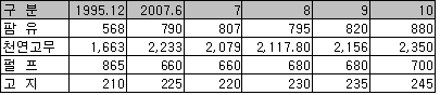 표, 그래프: | 유기ㆍ무기원료의 수입가격 변화 | <화학저널 2007/11/16> |