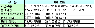 차세대 청정연료 개발사업은 <목질계 바이오매스로부터 바이오 부탄올 연료전환ㆍ이용기술>, <바이오매스로부터 BTL 합성원유 생산ㆍ이용 기술>, <NGH에 의한 천연가스 저장ㆍ운송 및 NGH 이용기술> 등 3개 중과제로 구성돼 있다. 목질계 바이오매스를 이용한 바이오부탄올 개발은 전체 식물성 바이오매스의 97%를 차지하는 목질계 원료를 사용함으로써 원료확보 측면에서 경제적이고, 바이오부탄올이 바이오에탄올 대비 가솔린 대체연료로써 특성이 뛰어나 수송연료로 개발 가치가 큰 것으로 평가되고 있다. 또 바이오매스를 이용한 BTL 합성원유는 고품질의 경유 및 휘발유 생산이 가능하고 인체유해 물질인 황과 방향족 성분을 포함하고 있지 않아 환경친화적인 연료이다. 천연가스하이드레이트(NGH)는 천연가스를 물과 함께 하이드레이트 형태로 얼린 것으로, 액화천연가스(LNG), 압축천연가스(CNG) 등 다른 수송방법에 비해 안전성과 운송조건이 좋고 세계 천연가스 매장량의 40%, 천연가스전 수의 80%를 차지하면서도 경제성 문제로 방치된 중소형 가스전의 개발 경제성을 보장함으로써 세계 2위의 천연가스 수입국인 국내 에너지 수급에 기여할 것으로 예상되고 있다. 한국화학연구원 정순용박사 “사업을 통해 차세대 청정연료 개발에 필요한 핵심원천기술과 상용화기술을 일괄 개발하게 된다”며 “1단계 사업이 끝나는 2010년까지 30kL 수준의 바이오부탄올, 35배럴 수준의 BTL 합성디젤, 20톤 수준의 NGH 실증 플랜트를 각각 개발할 예정”이라고 밝혔다. 최규종 에너지기술팀장은 “친환경 에너지자원인 바이오연료와 천연가스하이드레이트 생산기술을 개발함으로써 에너지안보와 기후변화에 능동적으로 대응하고 차세대청정 에너지기술과 관련 플랜트를 선점, 해외시장에 진출할 수 있는 기반이 마련될 것”으로 전망했다. <김 은 기자> 표, 그래프: | 차세대 청정연료 생산ㆍ이용을 위한 복합기술 개발사업 | <화학저널 2007/11/19> |