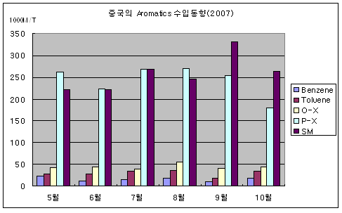 표, 그래프: | 중국의 Aromatics 수입동향(2007) |