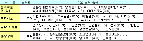또 금속1차제품은 달러화 약세, 재고 감소 및 중국의 수요증가 등으로 전기동, 금, 나동선, 망간철 등이 올라 1.0% 상승했으며, 운송장비는 주요 원자재 가격상승에 따른 생산비용 증가로 핸들, 동력전달장치, 쇼크업 쇼바 등 자동차부품류를 중심으로 올라 0.6% 상승했다. <김 은 기자> 표, 그래프: | 공산품의 생산자물가 변화(2008.1) | <화학저널 2008/2/14> |