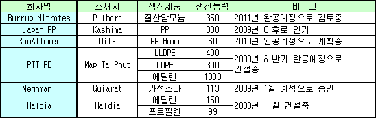 표, 그래프: | 아시아 석유화학 프로젝트(2008) |