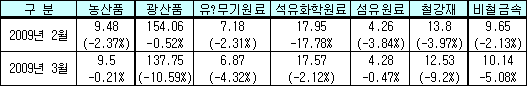 KOIMA 지수로 본 수입원자재 가격 등락률(2009.3)