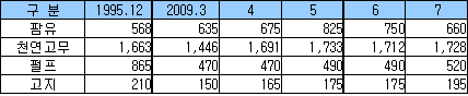펄프는 세계경기 침체로 약세를 보여왔으나 바닥을 치고 상승국면에 접어들면서 6.1% 오른 520달러를 형성했으며, 고지는 수집량 감소에 따른 수급타이트가 지속되면서 195달러로 11.4% 상승했다. <고우리 기자> 표, 그래프: | 유기ㆍ무기원료 수입가격 변화(2009) | <화학저널 2009/8/19> |