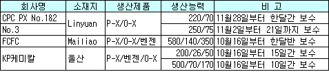 한편, 국내에서는 KP케미칼이 10월 중순부터 정기보수에 돌입했다.