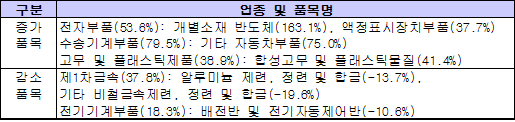 부품분야는 54억달러 흑자로 부품ㆍ소재 전체 무역수지 흑자의 84%를 차지했으며, 소재분야의 무역흑자는 10억달러로 전년동기대비 1억7000만달러 증가했으나, 부품ㆍ소재 전체 흑자의 16% 수준에 불과했다. 일본과의 부품ㆍ소재 무역역조는 2009년 4월 18억달러 적자에서 2010년 5월 22억달러로 전년동월대비 4억달러의 무역수지 적자 증가를 기록했다. 2001년 이후 일본과의 무역규모는 지속적으로 증가하고 있으나 세계 교역량에서 차지하는 비중은 전반적으로 감소추세를 보이고 있다. 2010년에는 세계경기 회복세가 가속화되는 가운데 IT제품의 수요 증가에 따른 반도체, 액정디바이스 및 자동차 수요확대에 기인한 기타 자동차부품 등을 중심으로 부품ㆍ소재 수출이 지속적으로 확대될 전망이다. 다만, 원자재 가격상승, 남부유럽의 재정위기가 확산 등이 변수로 작용할 것으로 예상된다. <고우리 기자> 표, 그래프: | 부품ㆍ소재 수출 증감품목 | <화학저널 2010/5/13> |