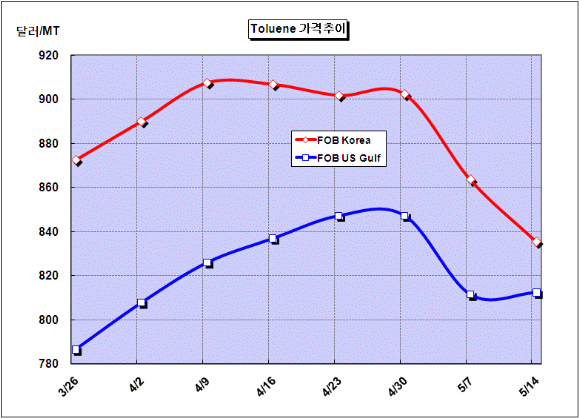 FOB Korea 943-944달러로 28달러 떨어져 … 일본은 가동률 낮춰 벤젠 가격은 5월14일 FOB Korea 톤당 944달러로 28달러 하락했다.아시아 벤젠(Benzene) 가격은 국제유가가 배럴당 74달러까지 하락하고 중국의 공급과잉이 지속됨에 따라 하락세를 이어갔다.
