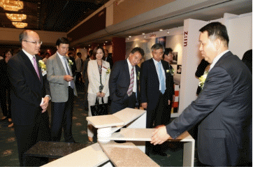 천연석영 및 아크릴계 신제품 공개 … 미국 포함 세계시장 공략 강화 LG하우시스(대표 한명호)가 폼질이 향상된 인조대리석 신제품을 공개하고 시장 공략에 박차를 가하고 있다.LG하우시스가 9월7일 광장동 쉐라톤그랜드워커힐 호텔에서 인조대리석 신제품들을 선보였다.