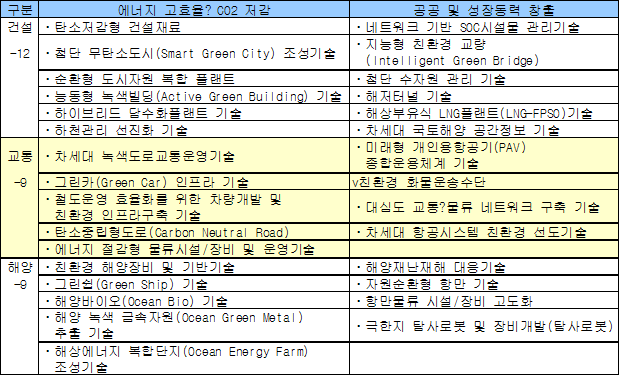 국토부, R&D 전략 수립 … 탄소저감형 건자재에 하이브리드 담수화 정부가 미래 핵심기술 30개를 선정해 저탄소 녹생성장에 속도를 내고 있다.국토해양 R&D 발전전략은 2005년 이후 투자증가에 힘입어 KTX-Ⅱ 실용화, 해수담수화 기술개발, 쇄빙선 아라온호 건조, 리튬 추출 성공 등 괄목할만한 성과를 냈지만, 저탄소 녹색성장에 부합하는 녹색 R&D 투자확대와 VC-10 사업 이후 미래 성장동력을 창출할 선도과제 선정도 필요한 시점이다. 이에 따라 R&D 거버넌스ㆍ사업구조ㆍ프로세스ㆍ성과창출 등 4개분야 12개 추진전략을 마련함으로써 국토해양 R&D의 종합적인 개선대책으로 차세대 기술발전을 이끌 30대 미래핵심기술 <Green-up 30>을 선정했다.