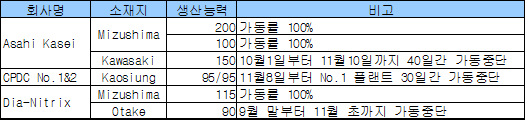 Asahi Kasei와 Dia-Nitrix 풀가동 … CPDC는 11월 가동중단