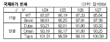 1월27일 1.43달러 올라 93.33달러 … WTI는 85달러대로 추락
