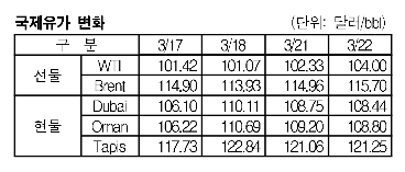3월22일 0.31달러 내려 108.44달러 형성 … WTIㆍBrent는 상승
