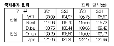 3월24일 0.23달러 내려 109.42달러 형성 … Brent유는 소폭 상승