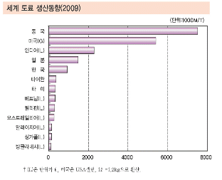 표, 그래프: < 세계 도료 생산동향 > <화학저널 2011/03/29> |