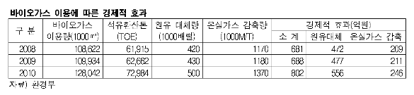 표, 그래프: < 바이오가스 이용에 따른 경제적 효과 > <화학저널 2011/03/30> |