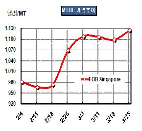 표, 그래프: < MTBE 가격추이 > <화학저널 2011/04/01> |